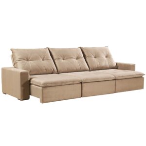 SOFÁ NOAH (2,20M) 4 LUGARES LIVING COM ALMOFADAS SOLTAS – VELUDO BEGE