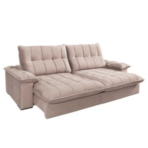 SOFÁ ZURIQUE (2,50M) RETRÁTIL E RECLINÁVEL – VELUDO MARFIM