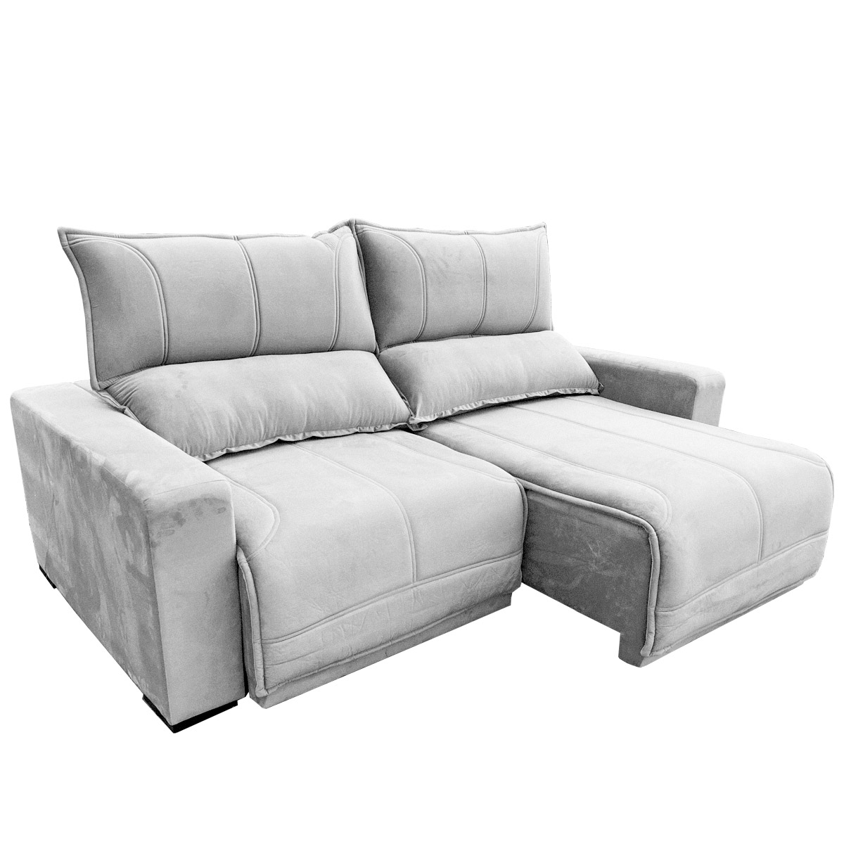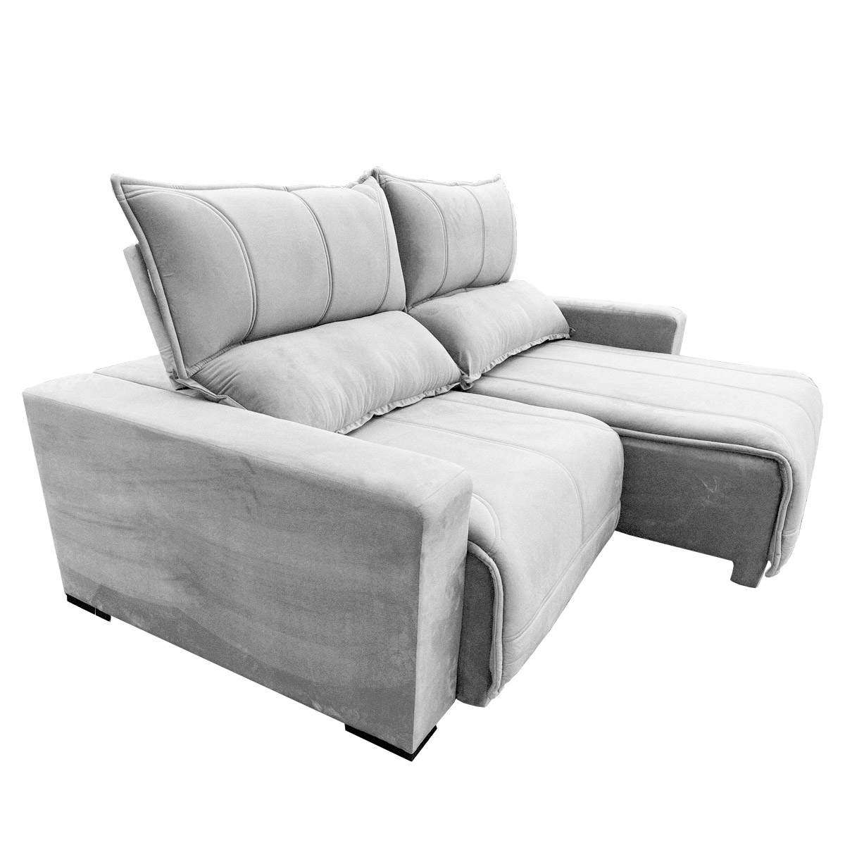 E fica melhor: além do assento aberto estender-se a até 1,70m de profundidade, seu encosto é reclinável com almofadas fixas preenchidas em fibra de poliéster siliconizada, favorecendo ainda mais o seu relaxamento. Os braços são preenchidos com espuma D-26.