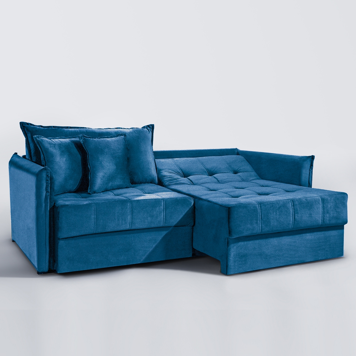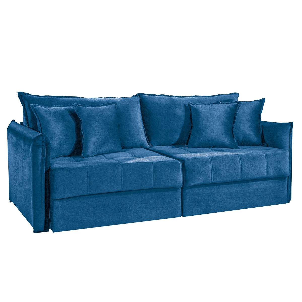 SOFÁ MILANNO (2,20) LIVING VERSÁTIL & RETRÁTIL COM ALMOFADAS SOLTAS – VELUDO AZUL